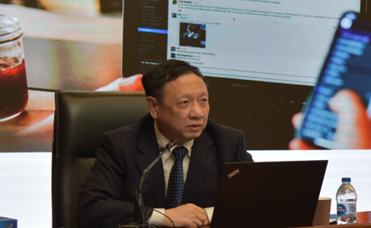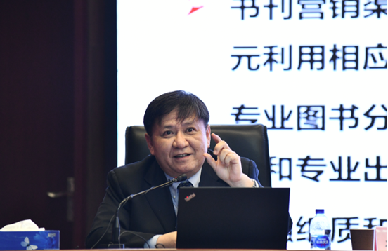 李鋒總編輯作了題為“堅持正確導向,加強精品建設,實現高質量發展”的編輯工作報告,圍繞內容質量、編校質量、設計及印制質量三個方面,全面回顧了2021年全社圖書質量工作情況,分析了質量工作存在的問題,并從內容質量、編校質量、設計及印制質量及專業數字出版四個方面部署了2022年的重點工作。